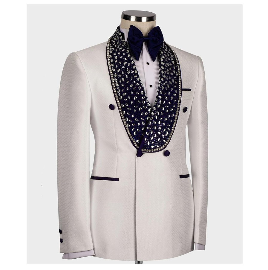 Prom Tuxedos Luxury Design- Handmade shiny rhinestone decoration, one button closure, shawl lapel, two fake flap pockets, adding the maximum charm in your big day. This tuxedo suit with full shoulder design and slim cut with 3D draping. Slim fit suits little tighter than a regular fit suit. When you wear it, you will become handsome, elegant and personable.